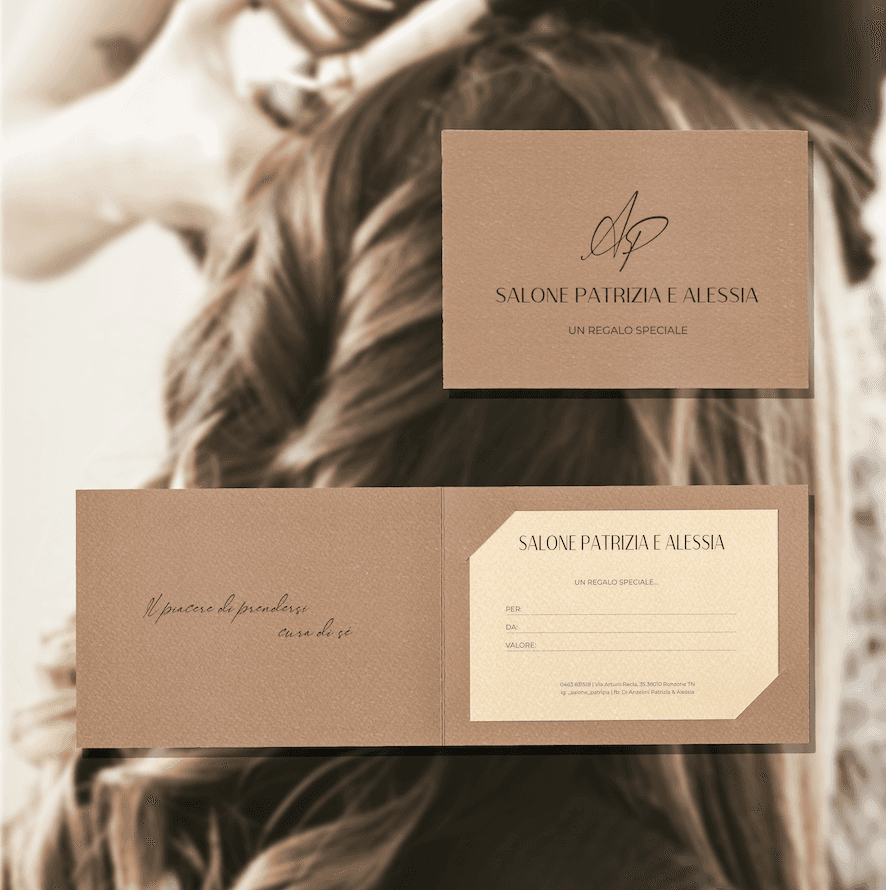 Salone Patrizia e Alessia began with a request for business cards and gift vouchers. The goal was to create a simple, elegant, and cohesive image.