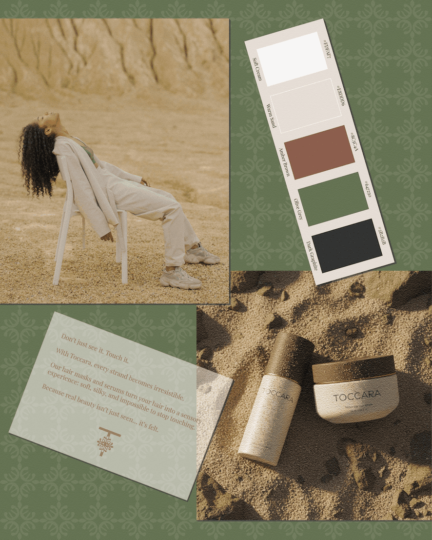 Toccara is a concept branding and packaging project for a luxury hair care brand. The goal was to evoke incense and amber scents elegantly.